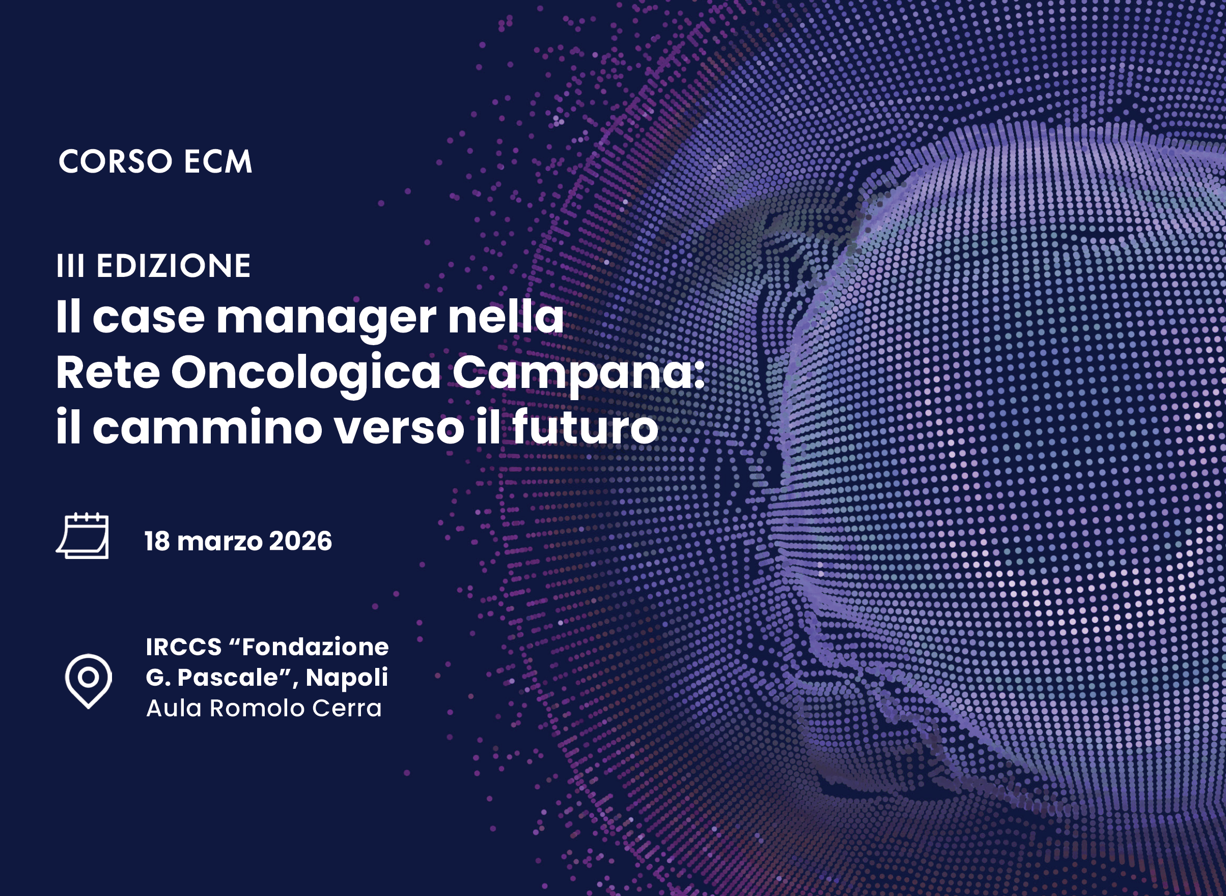 Siamo lieti di invitarvi a partecipare alla terza edizione del Corso di formazione per case manager accreditato ECM “Il case manager nella Rete Oncologica Campana: il cammino verso il futuro”, che si terrà il prossimo 18 marzo presso l’Aula Romolo Cerra dell’Istituto Nazione Tumori Fondazione G. Pascale di Napoli. L’evento sarà preceduto da un buffet di accoglienza alle ore 13.30, seguito dall’apertura dei lavori alle ore 14.30.